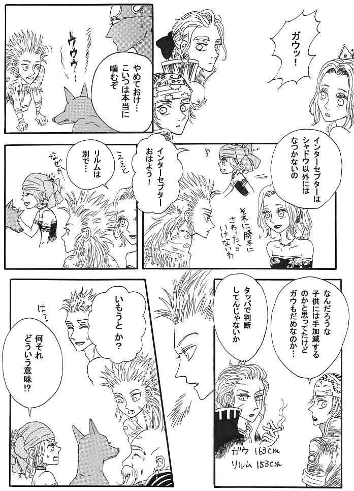 そしてこの絵、左からかいていったんですが、ガウとカイエンにスペース使いすぎて右がきゅんきゅんになってしまった・・・ごめんよ;