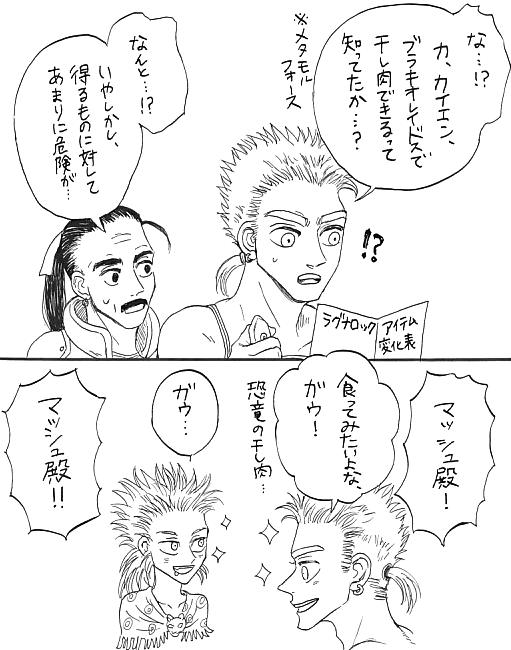 なにかと理由をつけてガウに干し肉をあげたい私、崩壊後とか干し肉がほとんど無用のアイテムになってもガウのHPが減った時は干し肉をひとつあげてからケアル・・・干し肉をあげてからケアルラ・・・ってしてました