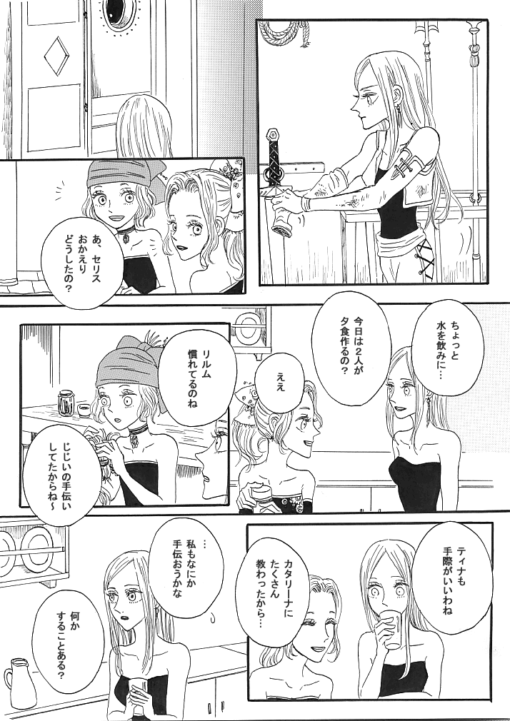 ガウの親父イベントでも「ガウにはどんなのが似合うかなあ・・・」って服選んでるセリスのセリフあったし(かわいい)、2人も仲間として普通に会話するんだよな?想像しただけでかわいい・・・。