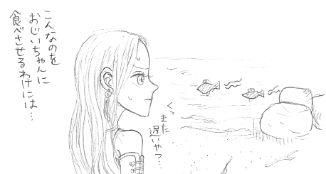 遅い魚しかいない場合、とらずにシドに話しかければ、海にもどった時に魚が入れ替わっています。