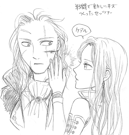 これ最初カイエンでかこうとしたんだけど、カイエンは男が泣いてる時に声かけたりしないかな?(漢気!)と思い直してセリスで。