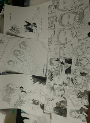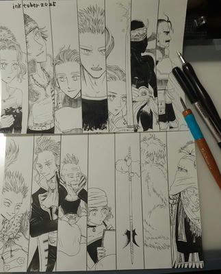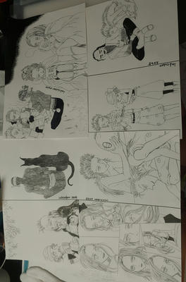 主人公全員かきたいけど構図は浮かばないのでコマ割りカットみたいな全員集合で力押し。