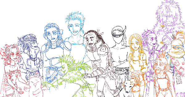 しかし集合絵はほんと大変だ。後半「もういいや!」みたいな境地になりけっこう雑なまま完成にしてしまったけど・・・一回くらいは挑戦できて良かったのかも・・・(もう二度とかかないような口ぶりだな・・・)