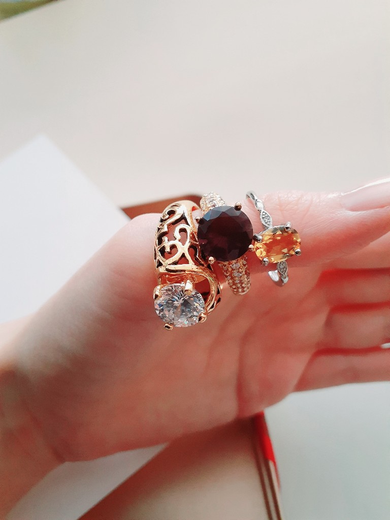 あとなんとなく推しの2人っぽいカラーだ!!!と選んだ指輪など。(このデザインも好き・・・今回気づいたけどツメに宝石がはまってるタイプの指輪デザインが好きなんです多分・・・)