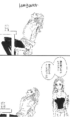 らくがき2コマ(背景はログアウトしました)、二日酔いでよりいっそう顔色悪いセッツァーに声をかけてあげるセリス(やさしい!)