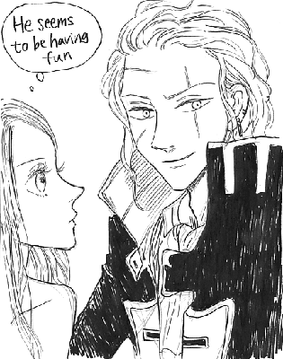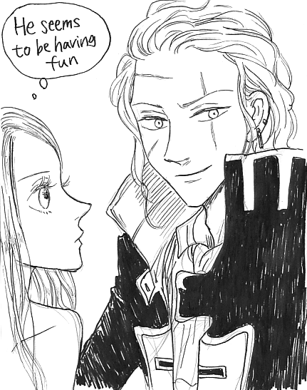 なんか知らんけど楽しそうなセッツァーと、楽しそうだなこの人って思って見てるセリス