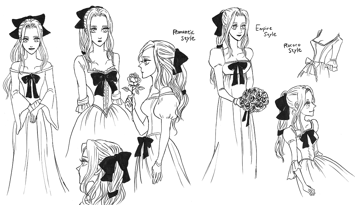 かくのは苦手なんですが本当にドレス大好きなので、今回のらくがきするのにドレスの形どんなのにしようか資料を見ながら練習したマリアセリス集。