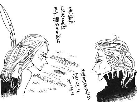 これから魚とりのハウツーでもレクチャーし始めそうなセリス(笑)