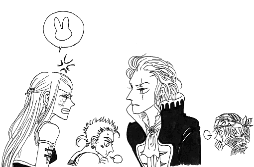 セツ氏と軽い口論?口げんか?になったが言葉たくみに言い負かされてしまい、反撃が思いうかばなかったセリスが苦しまぎれに「っこのウサギ男!! 」って捨てゼリフを吐いたら他のメンバーのツボに入り、「…ウサギ男…」「ウサギ男…」とか呟かれながら忍び笑いされる妄想