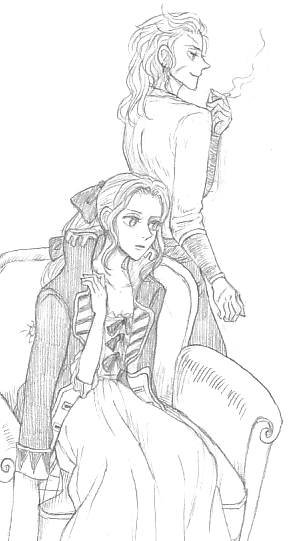 もとはといえば王道な構図としてセッツァーのコート羽織ったセリスをかきたかったんだけど途中で「もう一度マリアの格好云々」が混ざったというか・・・